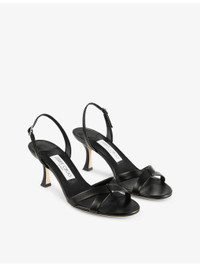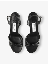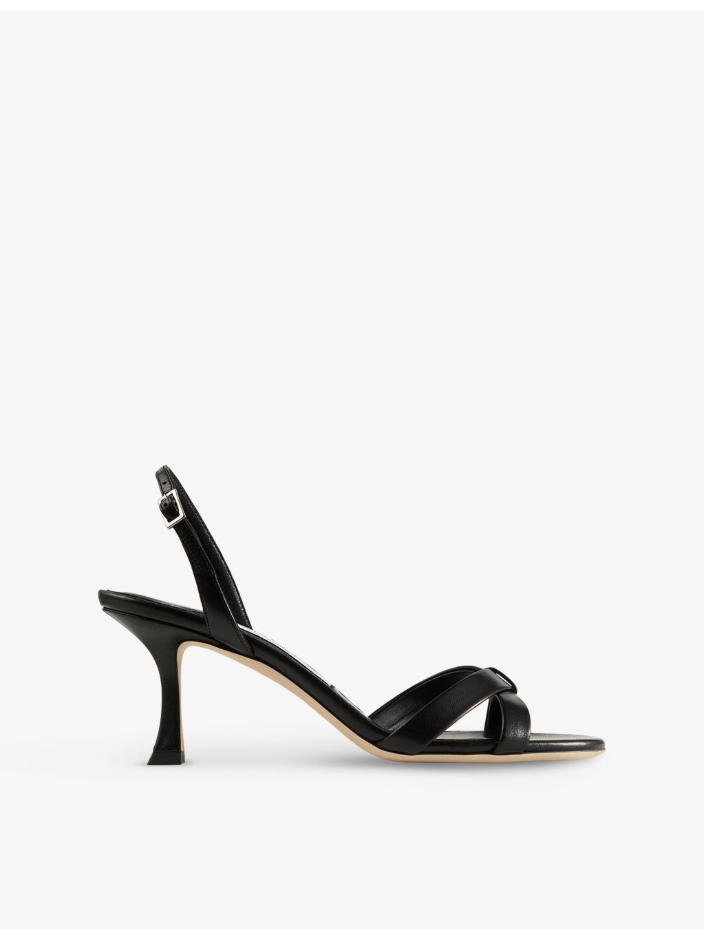 PRODUCT DETAILS - Jimmy Choo leather heeled sandals - 100% leather - Adjustable buckle fastening - Open round toe, cross-over toe strap, elasticated slingback ankle strap, flared heel - Heel height 70mm / 2.7in - Specialist leather clean - Made in Italy - Upper: 100% leather - Lining: 100% leather - Sole: 100% leather - Presented in a box Ref: R04472973