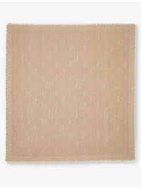 PRODUCT DETAILS - Jimmy Choo silk-blend scarf - 65% silk, 35% wool - Self-tie fastening - Square shape, frayed trim, all-over brand print - Dimensions: Height 140cm, width 140cm - Wipe with a clean, dry cloth Ref: R04263227
