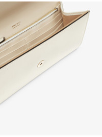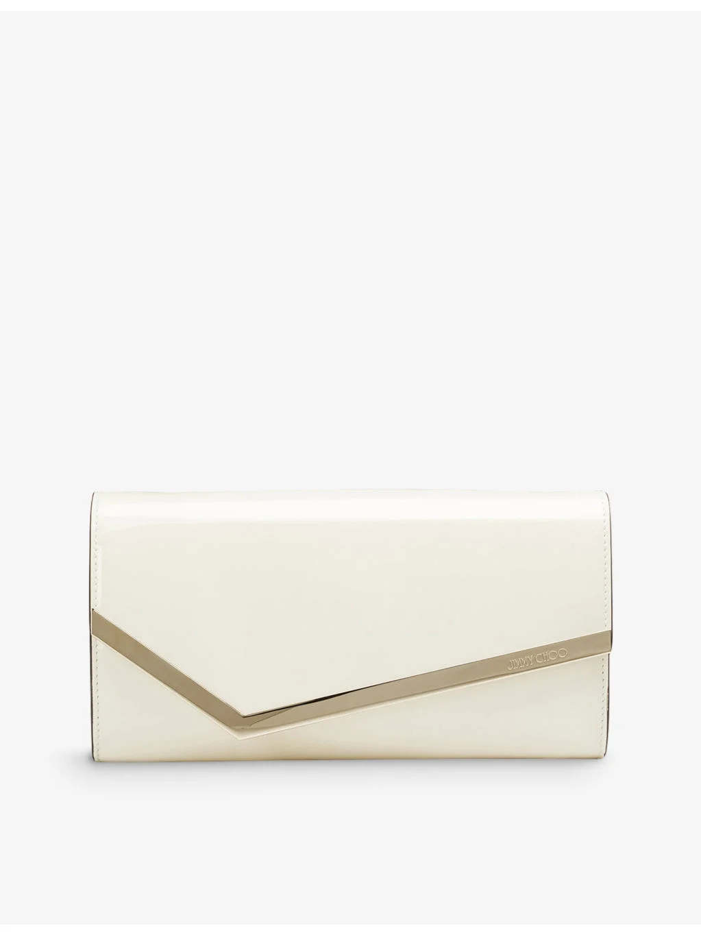 PRODUCT DETAILS - Jimmy Choo patent-leather clutch - 100% leather - Magnetic stud fastening - Detachable chain strap, angular flap, silver-tone hardware, suede and leather interior, 6 internal card slots, internal zipped compartment - Height 12cm, width 3cm, length 22cm - Specialist leather clean - Made in Italy Ref: R04077412