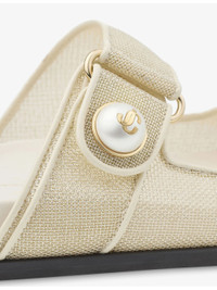 PRODUCT DETAILS - Jimmy Choo mesh flat sandals - 100% mesh; trims 100% leather - Buckle fastening - Round open toe, adjustable double strap fastening, pearl embellishment, JC monogram, branded outsole - Wipe with a clean, dry cloth - Upper: 100% mesh - Lining: 100% leather - Sole: 100% rubber Ref: R04478072