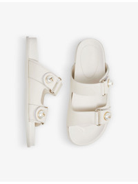 Fayence Sandal Latte Leather Flat Sandals with Pearl Embellishment
