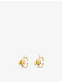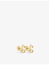 JC logo-embellished gold-toned brass stud earrings