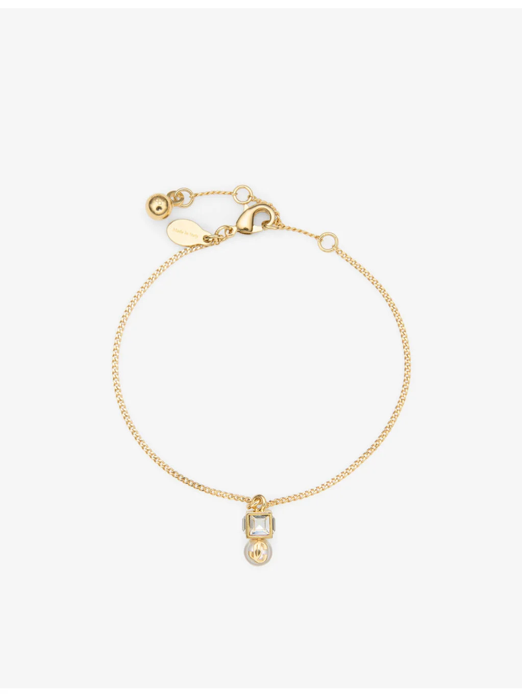 PRODUCT DETAILS - Jimmy Choo brass bracelet - 100% brass - Cubic zirconia - Lobster clasp fastening - Branded JC faux pearl, crystal cube, polished finish - Wipe with a clean, dry cloth - Made in Italy Ref: R04568151
