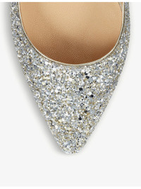Romy 85 Champagne Coarse Glitter Fabric Pointy Toe Pumps