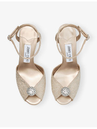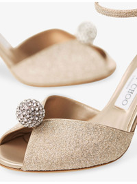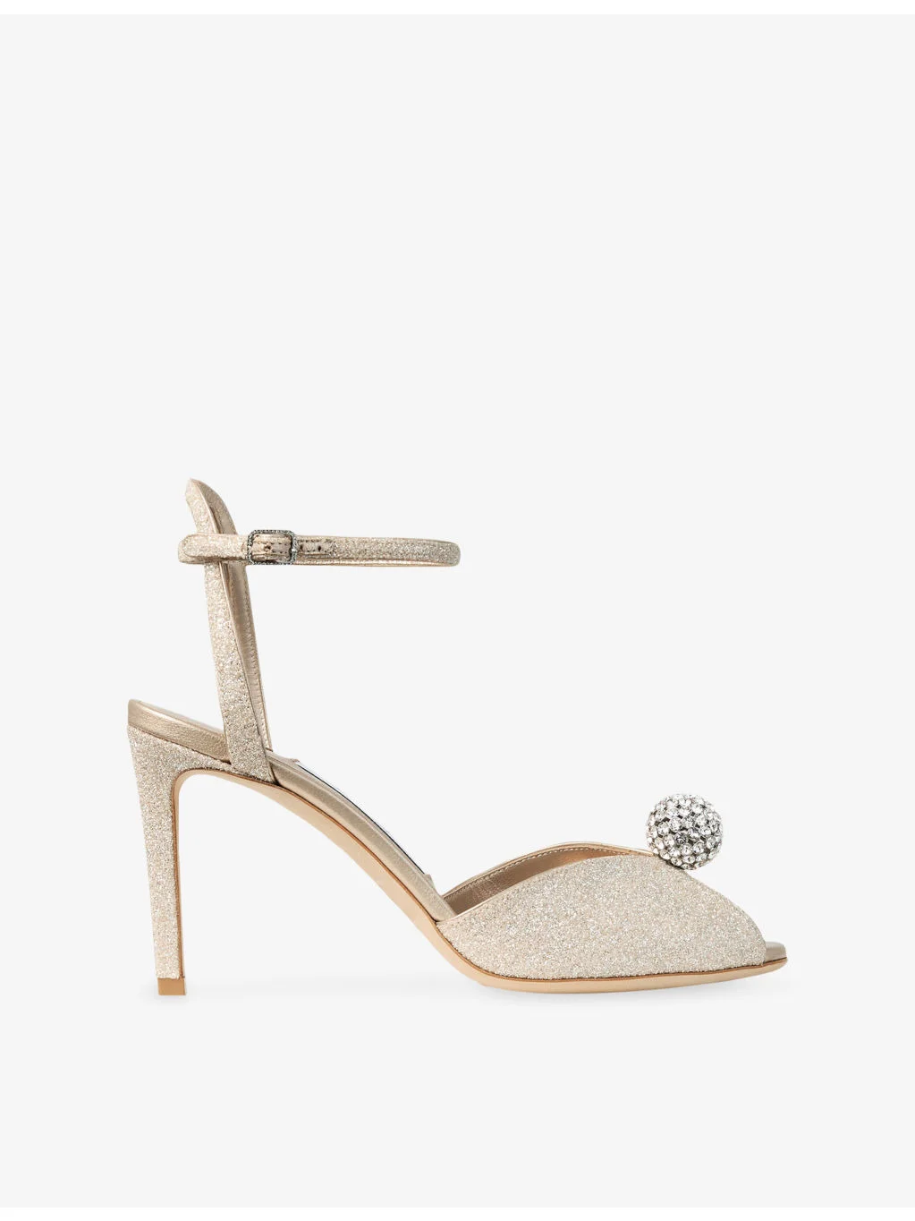 PRODUCT DETAILS - Jimmy Choo leather heels - 100% leather - Ankle-buckle fastening - Round toe, V-cut with embellishment at front, stiletto heel, glitter finish - Heel height 85mm - Specialist leather clean - Upper: 100% leather - Lining: 100% leather - Sole: 100% leather Ref: R04549862