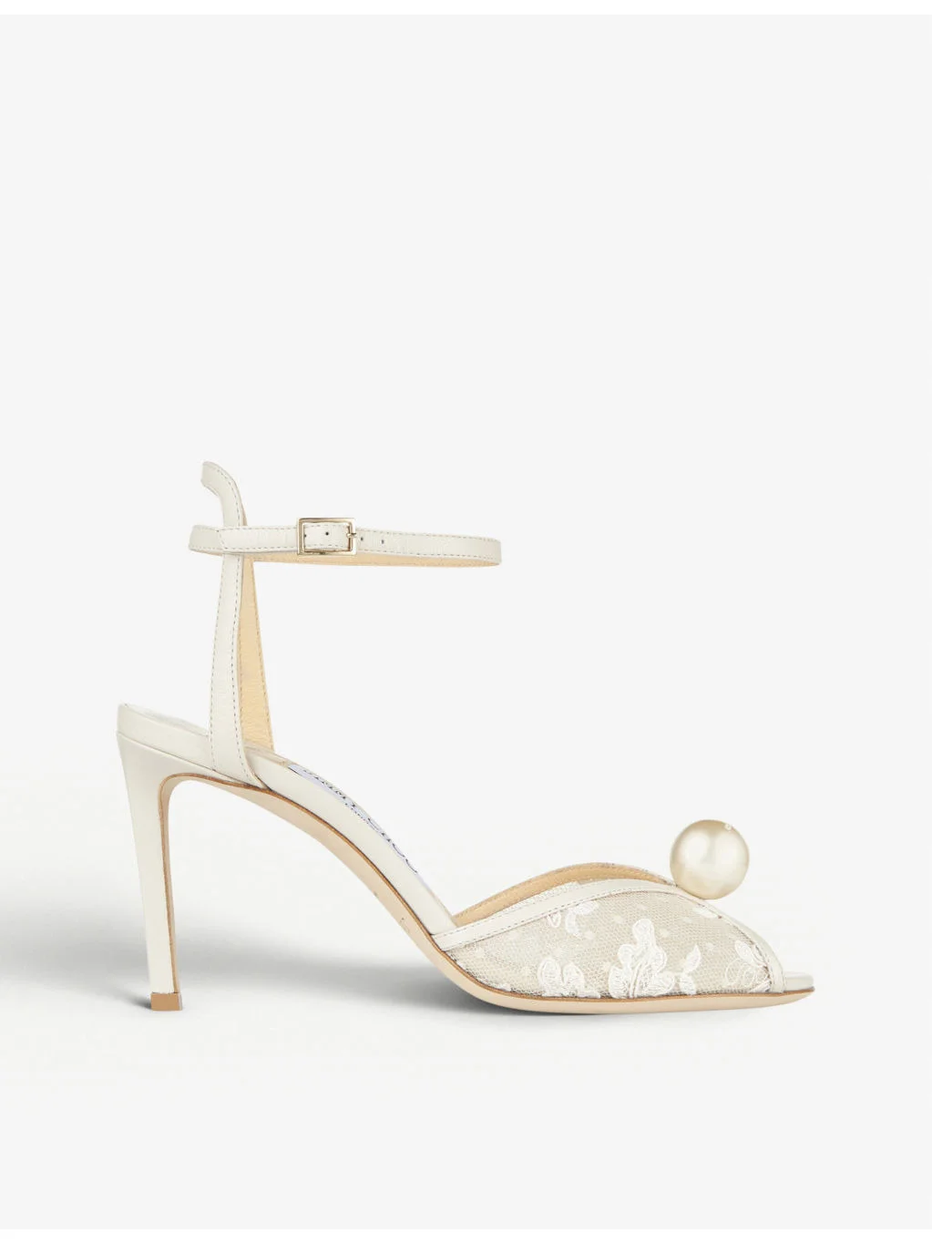 Sacora 85 Ivory Floral Lace Sandals with Pearl Detail