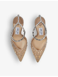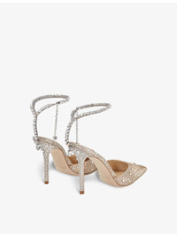 PRODUCT DETAILS - Jimmy Choo satin heeled courts - 100% satin - Ankle-buckle fastening - Closed toe, pointed toe, backless, stiletto heel, all-over crystal embellishment - Heel height 100mm/ 3.9'' - Wipe with a clean, dry cloth - Upper: 100% satin - Lining: 100% leather - Sole: 100% leather Ref: R04246339