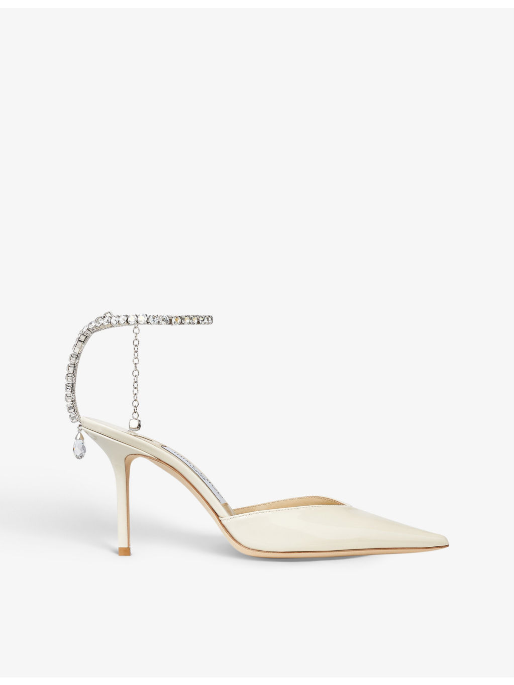 PRODUCT DETAILS - Jimmy Choo patent-leather courts - 100% leather - Hook-and-eye fastening - Crystal-embellished chain strap, pointed toe, curved heel, stiletto heel - Heel height 85mm / 3.3"" - Specialist leather clean - Made in Italy - Upper: 100% leather - Lining: 100% leather - Sole: 100% leather - Fits small to size. We recommend taking half a size larger Ref: R03946600