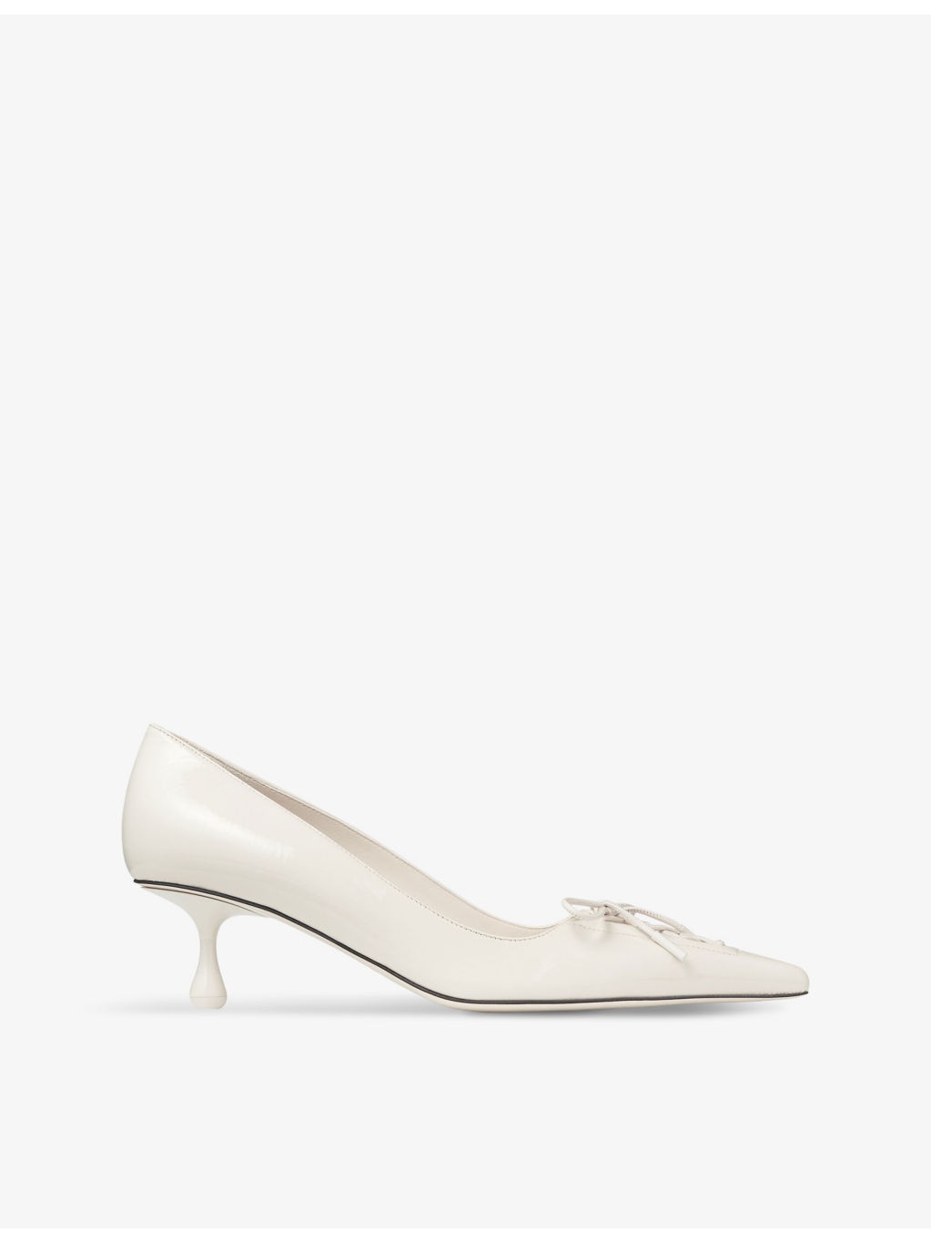 PRODUCT DETAILS - Jimmy Choo leather courts - 100% leather - Slips on - Closed pointed toe, lace-up design to the front, self-tie bow to the front, sculpted heel - Heel height 1.9” - Specialist leather clean - Upper: 100% leather - Lining: 100% leather - Sole: 100% leather Ref: R04319619