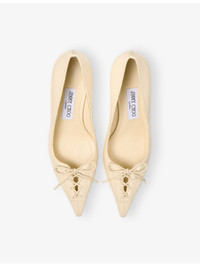 PRODUCT DETAILS - Jimmy Choo leather pumps - 100% leather - Pointed toe, lace-up detail at front - Heel height 50mm - Specialist leather clean - Made in Italy - Upper: 100% leather - Lining: 100% leather - Sole: 50% rubber, 50% leather Ref: R04500314