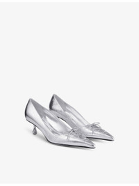 PRODUCT DETAILS - Jimmy Choo metallic-leather courts - 100% metallic leather - Slips on - Pointed closed toe, lace-up design at front, self-tie bow at front, branded insole, sculpted drop heel, metallic finish - Heel height 1.9in - Specialist leather clean - Made in Italy - Upper: 100% leather - Lining: 100% leather - Sole: 50% calf leather, 50% rubber Ref: R04401868