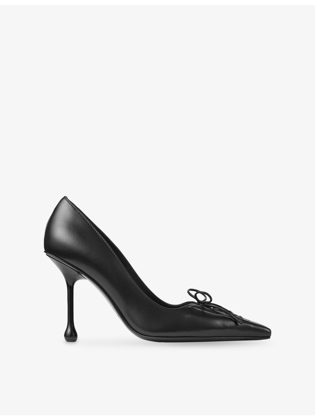 PRODUCT DETAILS - Jimmy Choo leather heels - 100% leather - Pointed toe, lace-upper bow detail, high heel - Heel height 95mm - Specialist leather clean - Made in Italy - Upper: 100% leather - Lining: 100% leather - Sole: 100% leather Ref: R04500315