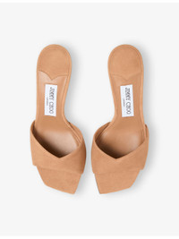 PRODUCT DETAILS - Jimmy Choo suede heeled sandals - 88% leather, 5% plastic, 5% salpa, 2% metal - Square open toe, branded footbed, sculpted high heel, tonal stitching - Specialist leather clean - Made in Italy - Upper: 100% leather - Lining: 100% leather - Sole: 100% leather Ref: R04473000