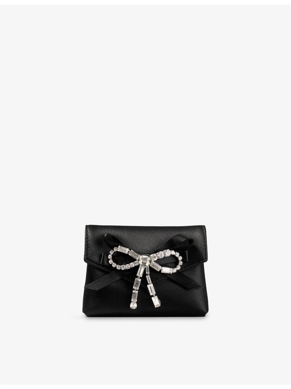 PRODUCT DETAILS - Jimmy Choo satin cardholder - 100% satin - Flap-over with magnetic closure - Crystal bow at front, chain strap, card slots at interior, soft shape - Height 9cm, width 3cm, length 11.1cm - Specialist clean Ref: R04549875