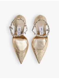 PRODUCT DETAILS - Jimmy Choo metallic-leather heeled courts - 100% leather - Ankle-buckle fastening - Closed pointed toe, crystal embellishment ankle strap, stiletto heel, crushed metallic finish - Heel height 3.9in - Specialist leather clean - Upper: 100% leather - Lining: 100% leather - Sole: 100% synthetic Ref: R04401879