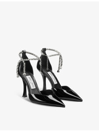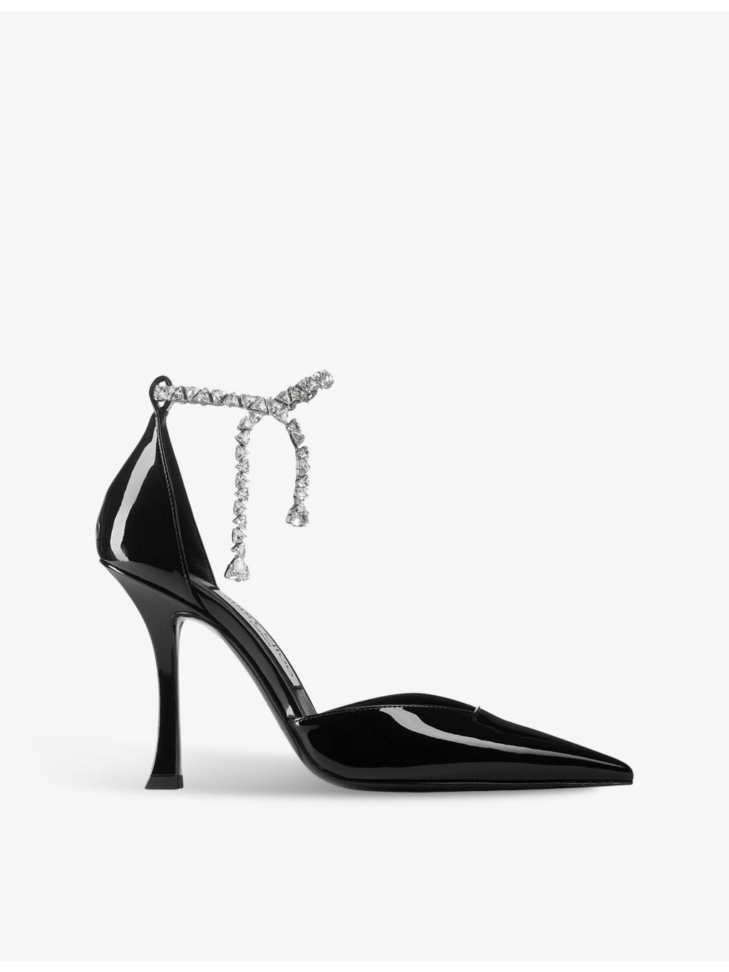 PRODUCT DETAILS - Jimmy Choo patent-leather heeled courts - 100% leather - Ankle-buckle fastening - Closed pointed toe, crystal embellishment ankle strap, stiletto heel, patent finish - Specialist leather clean - Upper: 100% leather - Lining: 100% leather - Sole: 100% synthetic Ref: R04401878