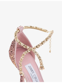 PRODUCT DETAILS - Jimmy Choo satin heels - 100% satin - Ankle-buckle fastening - Pointed toe, crystal-embellished, high heel - Heel height 100mm - Specialist clean - Made in Italy - Upper: 100% satin - Lining: 100% leather - Sole: 100% leather Ref: R04500322