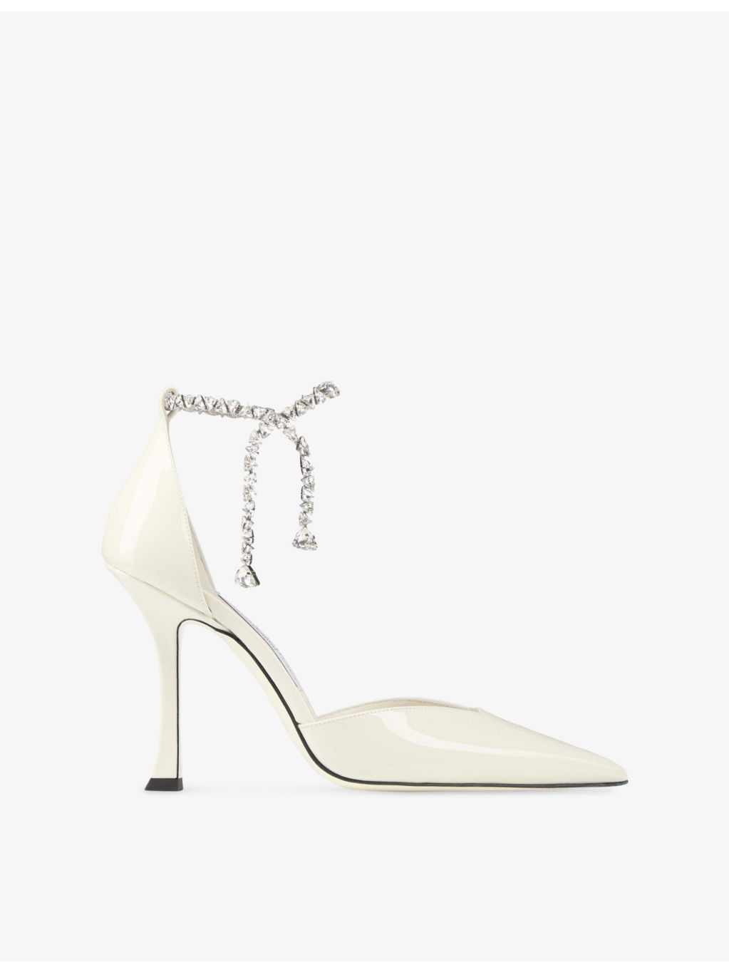PRODUCT DETAILS - Jimmy Choo leather heels - 100% leather - Ankle-buckle fastening - Pointed toe, crystal-embellished, high heel - Heel height 100mm - Specialist clean - Made in Italy - Upper: 100% leather - Lining: 100% leather - Sole: 100% leather Ref: R04500323