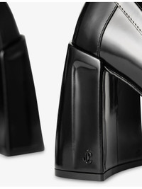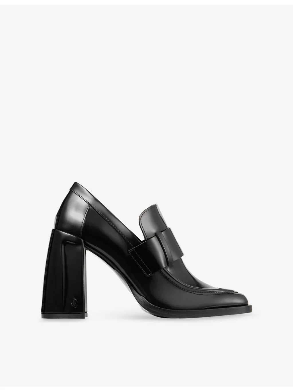 PRODUCT DETAILS - Jimmy Choo leather loafers - 100% leather - Round toe, patent finish, block heel - Heel height 95mm - Specialist leather clean - Made in Italy - Upper: 100% leather - Lining: 100% leather - Sole: 50% rubber, 50% leather Ref: R04500328