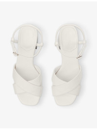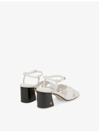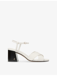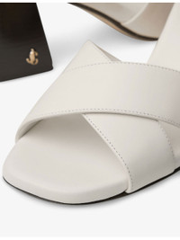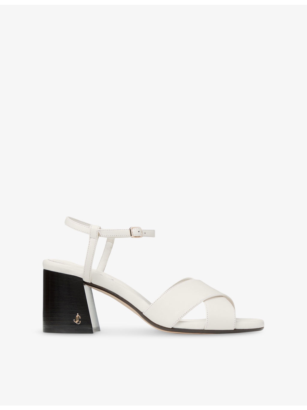 PRODUCT DETAILS - Jimmy Choo leather heeled sandals - 100% leather - Adjustable buckle fastening - Square open toe, crossover straps, adjustable ankle strap, JC monogram emblem at heel, high block heel, gold-toned hardware - Heel height 65mm / 2.25in - Specialist leather clean - Upper: 100% leather - Made in Italy - Made in Italy - Lining: 100% leather - Sole: 100% leather Ref: R04473011
