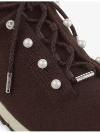 PRODUCT DETAILS - Jimmy Choo cashmere knit trainers - 100% cashmere blend - Lace-up fastening - Round closed toe, pearl-embellished eyelets, sock fit - Specialist leather clean - Upper: 100% fabric - Lining: 100% fabric - Sole: 100% rubber Ref: R04500330