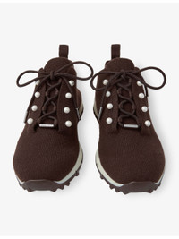 Veles Chocolate Cashmere Melange Knit Trainers with Pearl Buttons