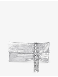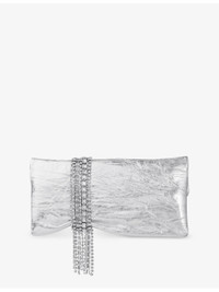 Zandra crystal-embellished metallic-leather clutch bag