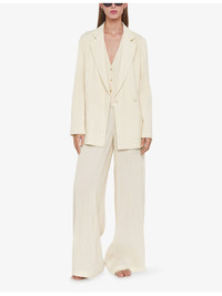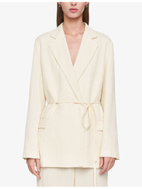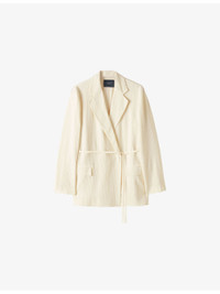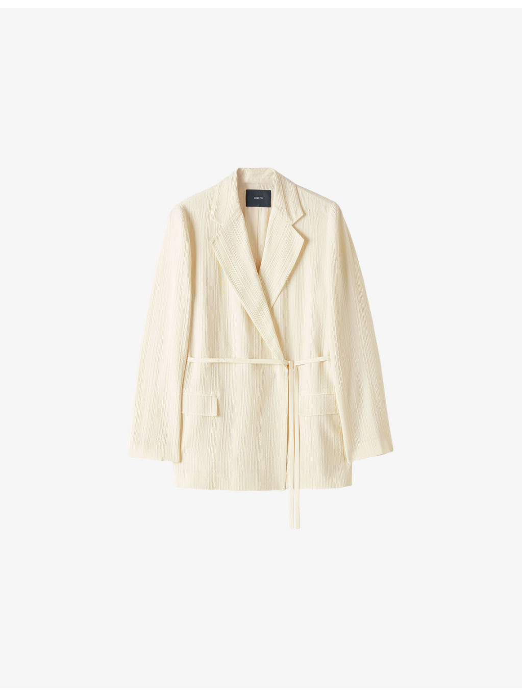 PRODUCT DETAILS - JOSEPH silk-blend blazer - 69% viscose, 31% silk - Self-tie fastening at waist - Relaxed fit, notch lapels, long sleeves, double-breasted front, all-over pleated texture, self-tie belt at waist, two flap pockets at front, single vent at back hem, lined - Dry clean only - True to size - Lightweight, non-stretch Ref: R04471537