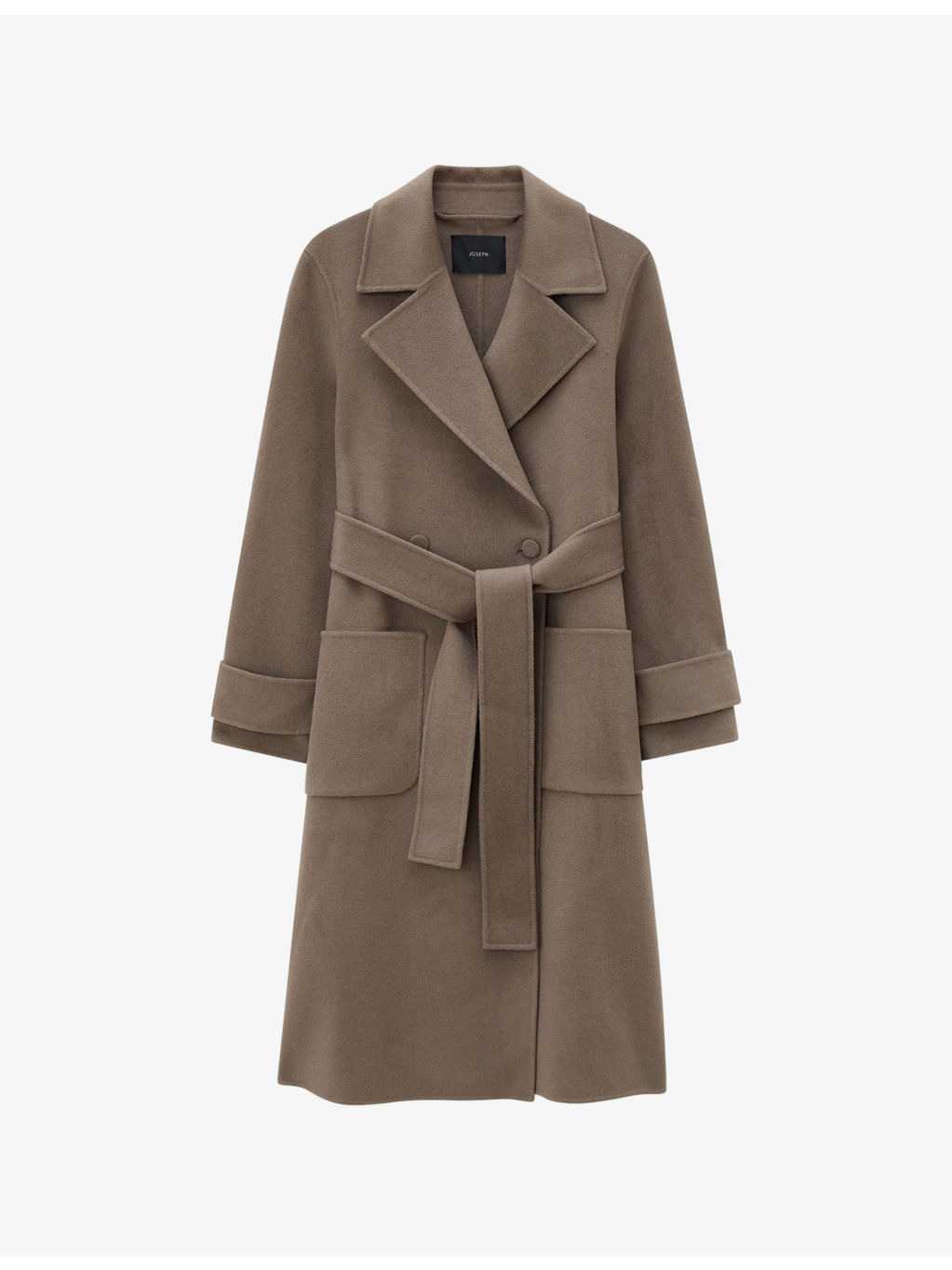 PRODUCT DETAILS - JOSEPH wool and cashmere-blend coat - 80% wool, 20% cashmere - Self-tie fastening - Relaxed fit, notched lapels, dropped shoulders, long sleeves, cuff straps, two front patch pockets, removable belt, A-line silhouette - Dry clean - True to size - Midweight, non-stretch Ref: R04519351