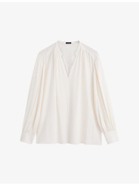 PRODUCT DETAILS - JOSEPH silk crepe-de-chine blouse - 100% silk - Slips on - Relaxed fit, stand collar, V-neck, long sleeves, slits to the side of sleeves, gathered shoulders, buttoned cuffs, box pleat to the back - Machine wash cold - True to size - Lightweight, non-stretch Ref: R04371669