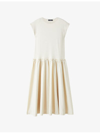 PRODUCT DETAILS - JOSEPH cotton poplin-jersey midi dress - 100% cotton - Relaxed fit, round neck, ribbed trim at neck, cap sleeves, contrast voluminous skirt, midi length, A-line silhouette - Machine wash at 30°C - True to size - Lightweight, slight stretch Ref: R04471555