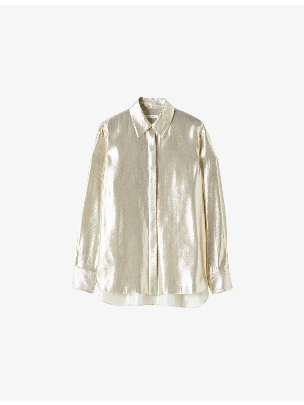 PRODUCT DETAILS - JOSEPH silk-blend blouse - 66% silk, 34% metallic fibres - Button fastening - Relaxed fit, collar, long sleeves, buttoned cuffs, metallic finish - Dry clean - True to size - Lightweight, non-stretch Ref: R04545439