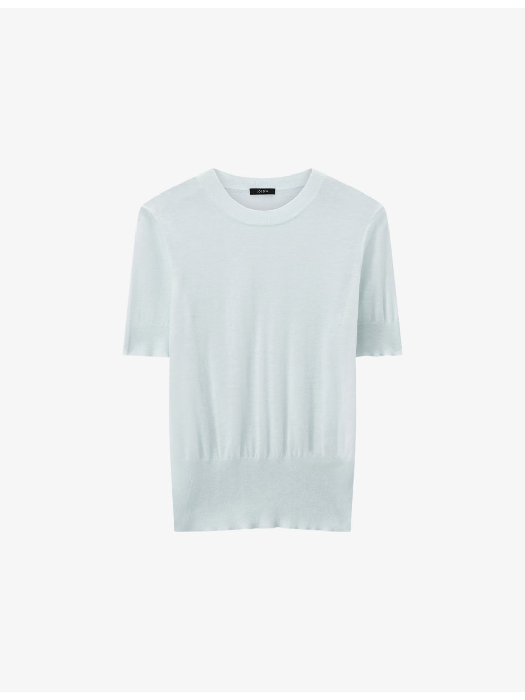 PRODUCT DETAILS - Joseph cashmere knitted top - 100% cashmere - Slim fit, round neckline, short sleeves, brushed texture, ribbed trims - Hand wash cold - True to size - Model is 5ft 10in/1.78m and wears a size small - Lightweight, stretchy Ref: R04506126