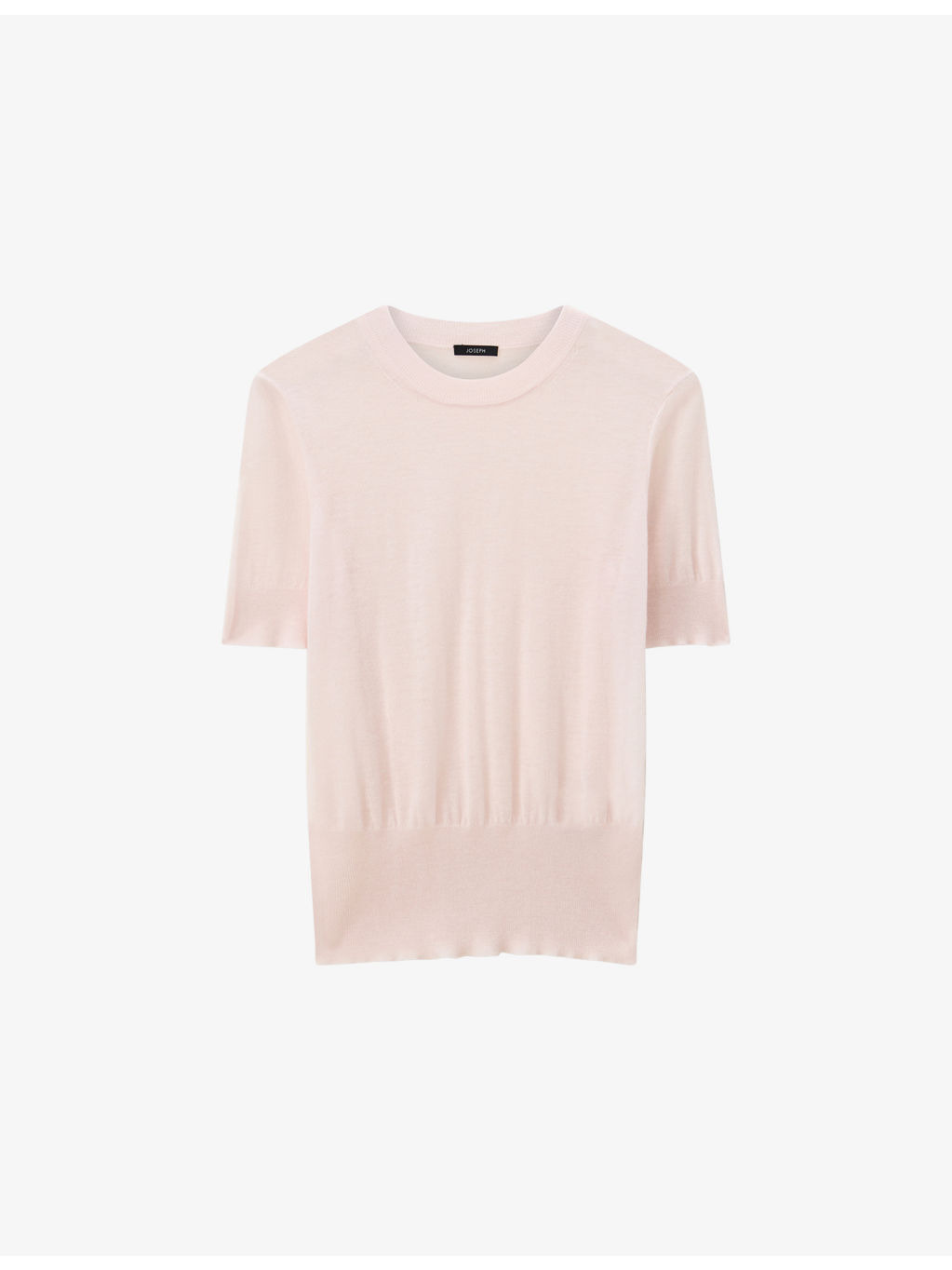 PRODUCT DETAILS - Joseph cashmere knitted top - 100% cashmere - Slim fit, round neckline, short sleeves, brushed texture, ribbed trims - Hand wash cold - True to size - Model is 5ft 10in/1.78m and wears a size small - Lightweight, stretchy Ref: R04506124