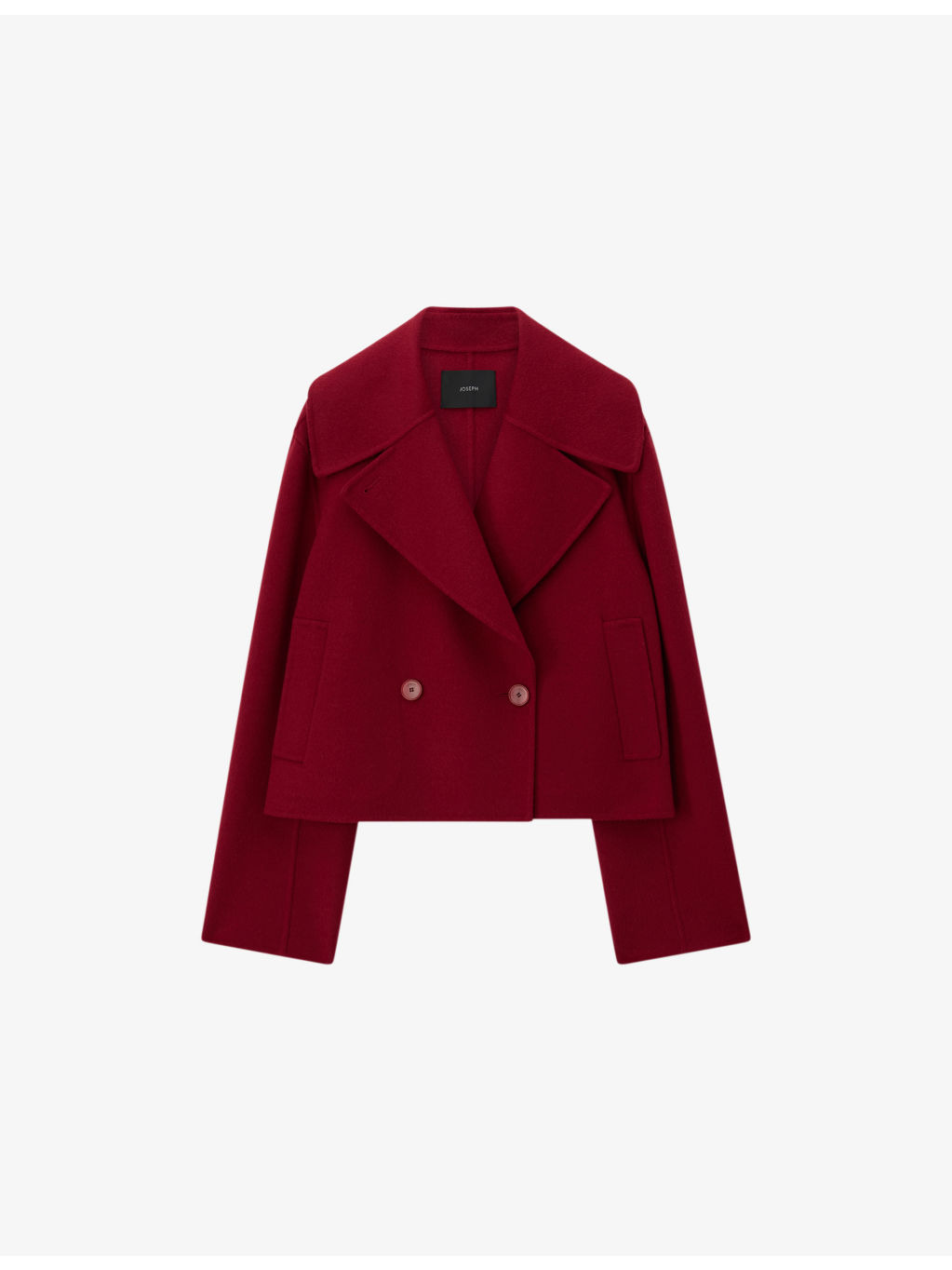 PRODUCT DETAILS - JOSEPH wool and cashmere jacket - 80% wool, 20% cashmere - Button fastening - Regular fit, double-breasted, wide notch lapels, side pockets, long sleeves, cropped - Dry clean - True to size - Heavyweight, slight stretch Ref: R04519360