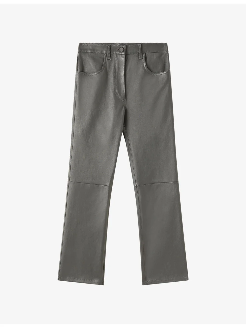 PRODUCT DETAILS - JOSEPH leather trousers - 100% leather - Button and zip-fly fastening - Regular fit, mid-rise, subtle flared leg, belt loops, side pockets, back pockets, cropped - Specialist leather clean - True to size - Midweight, non-stretch Ref: R04519431