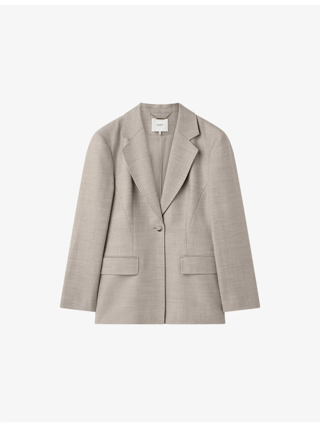 PRODUCT DETAILS - Joseph wool blazer - 100% virgin wool - Button fastening - Relaxed fit, single-breasted, notched lapels, padded shoulders, long sleeves, pockets at front, textured finish - Dry clean - True to size - Model is 5ft 10in/1.78m and wears a size small - Midweight, non-stretch Ref: R04572257