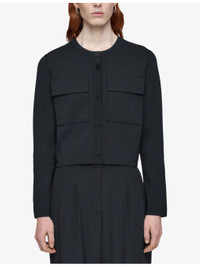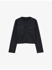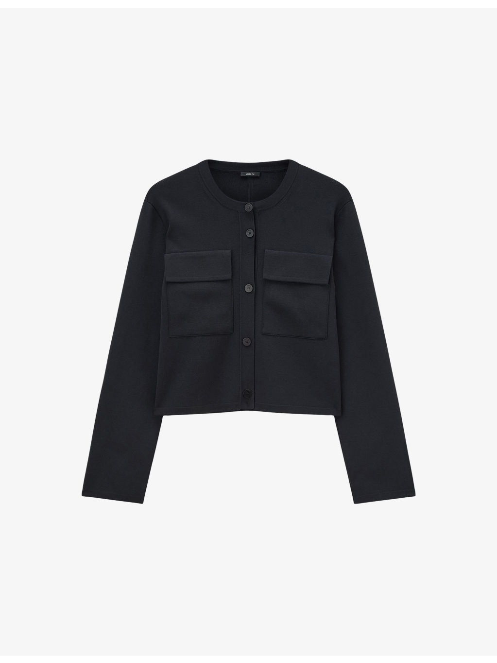 PRODUCT DETAILS - JOSEPH stretch-knit cardigan jacket - 52% viscose, 25% polyester, 21% polyamide, 2% elastane - Exposed button fastening at front - Boxy fit, round neck, long sleeves, two flap patch pockets at chest, all-over compact knit - Dry clean only - True to size - Midweight, slight stretch Ref: R04506114