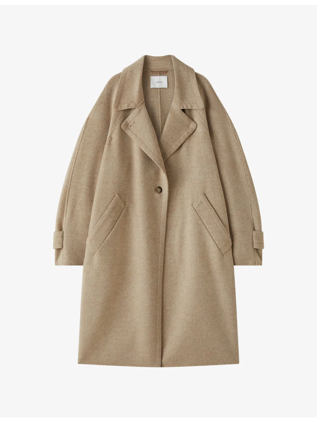 PRODUCT DETAILS - JOSEPH wool and cashmere-blend coat - 80% wool, 20% cashmere - Exposed button fastenings at front - Relaxed fit, single-breasted, wide collar, long sleeves, cuff tabs, two slanted welt pockets, cocoon silhouette - Dry clean - True to size - Midweight, non-stretch Ref: R04572298