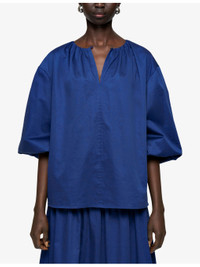 PRODUCT DETAILS - JOSEPH cotton-sateen blouse - 100% cotton - Concealed button fastenings at front - Relaxed fit, round neck, keyhole detail at neckline, three-quarter-length balloon sleeves, dropped shoulders, gathered neckline, elasticated cuffs - Machine wash cold - True to size - Lightweight, non-stretch Ref: R04506176