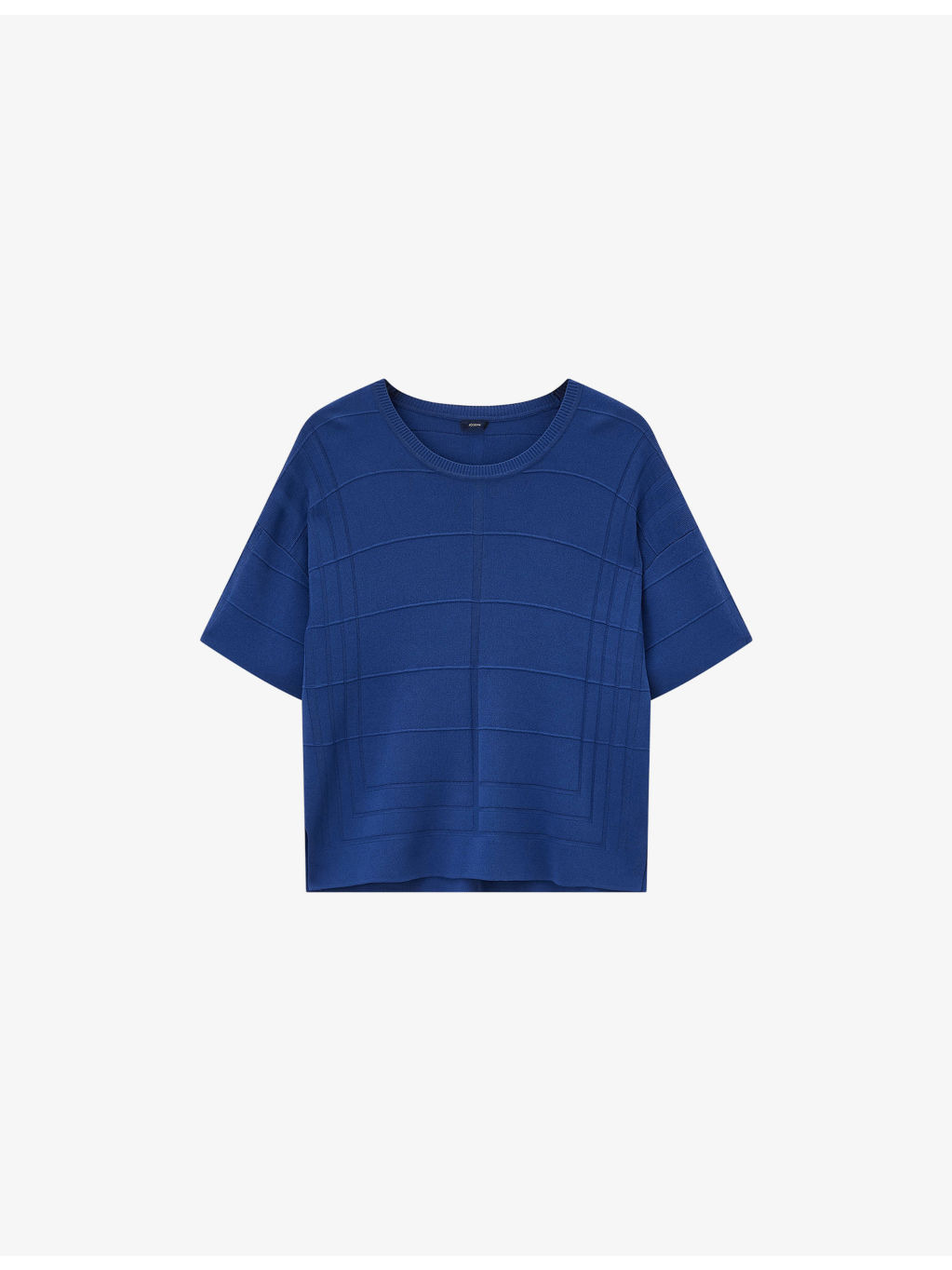 PRODUCT DETAILS - JOSEPH viscose-blend T-shirt - 95% viscose, 5% polyester - Boxy fit, round neck, short sleeves, dropped shoulders, all-over knitted grid pattern, side slits at hem, ribbed trim to collar - Machine wash cold - True to size - Lightweight, slight stretch Ref: R04506127