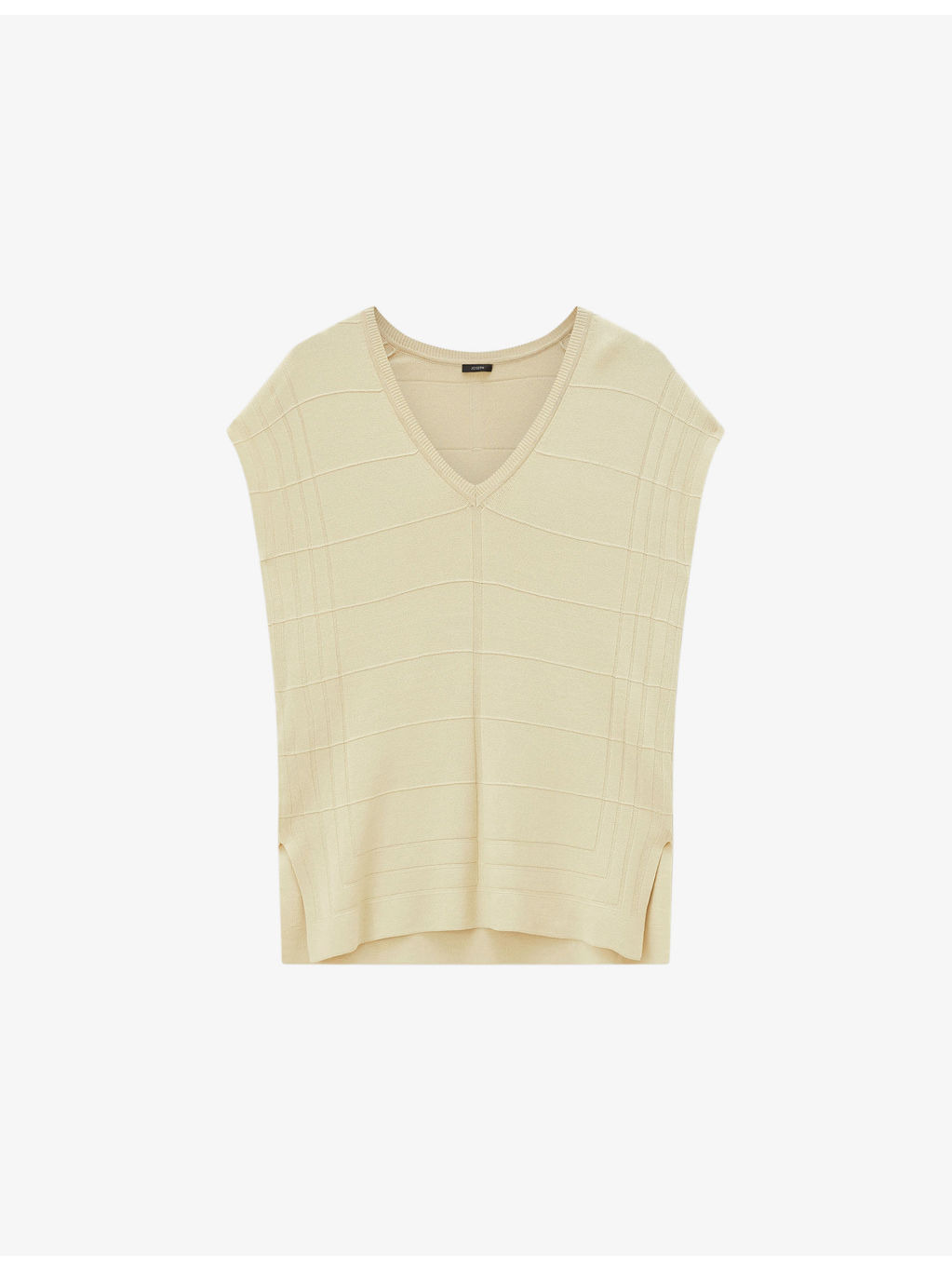 PRODUCT DETAILS - JOSEPH viscose-blend top - 95% viscose, 5% polyester - Relaxed fit, V-neck, sleeveless, dropped shoulders, all-over knitted grid pattern, side slits at hem, ribbed trim to collar - Machine wash cold - True to size - Lightweight, slight stretch Ref: R04506132