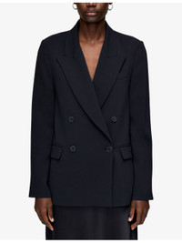 PRODUCT DETAILS - JOSEPH woven blazer - 76% viscose, 20% acetate, 4% elastane - Exposed button fastenings at front - Regular fit, double-breasted, peak lapels, padded shoulders, long sleeves, buttoned cuffs, one chest welt pocket, two front flap pockets, central rear vent - Dry clean - True to size - Midweight, non-stretch Ref: R04462199