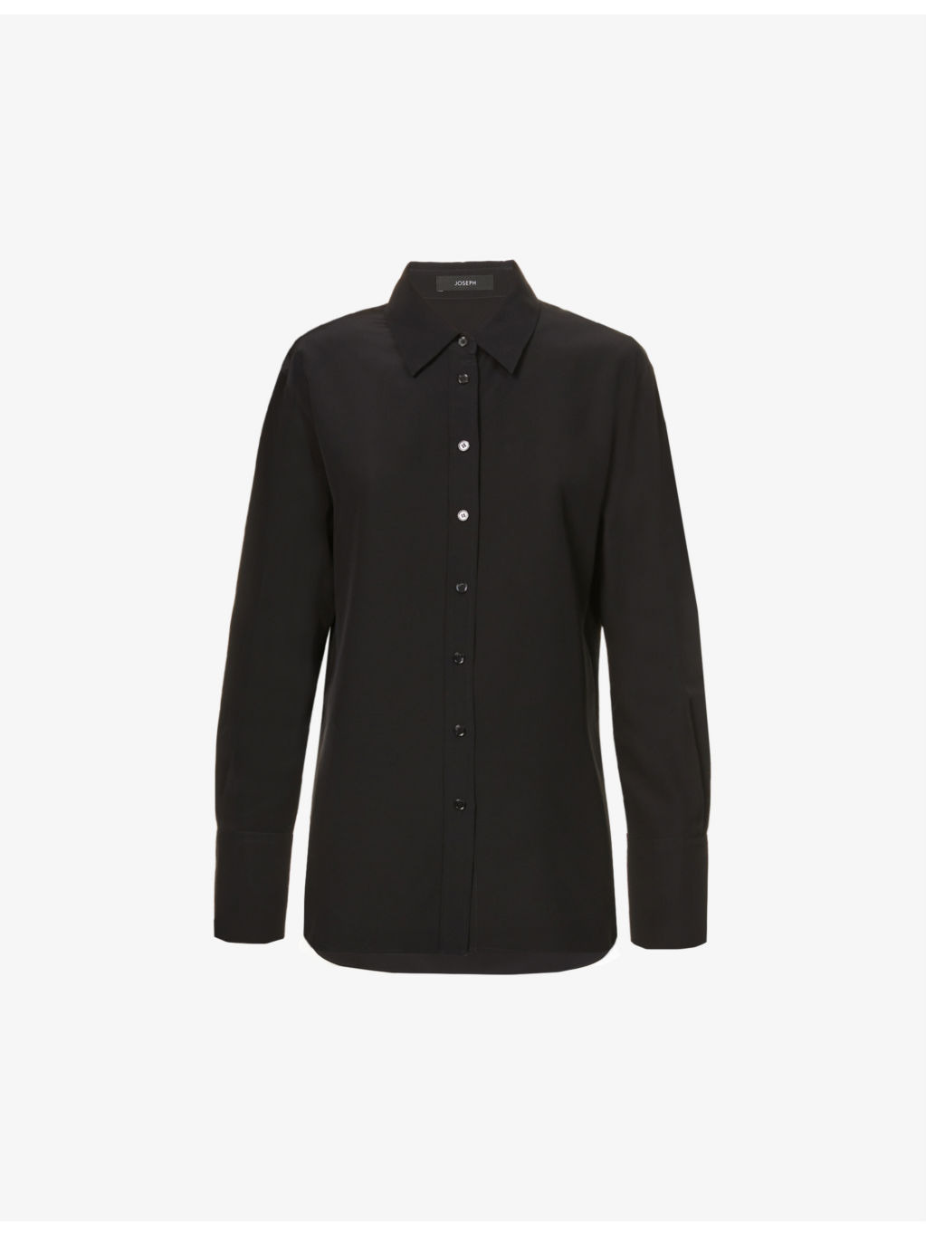 PRODUCT DETAILS - JOSEPH silk blouse - 100% silk - Button fastening at front - Relaxed fit, long sleeves, branded buttons at chest and cuffs, elongated cuffs, stepped hem at back - Hand wash - True to size - Size UK 10: length 32in / 82cm - Model is 5ft 10in / 1.78m and wears a size UK 10 - Lightweight, non-stretch Ref: R03900846
