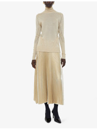 PRODUCT DETAILS - JOSEPH knitted top - 70% viscose, 15% polyester, 15% metallic fibres - Slim fit, high-neck, long sleeves, pointelle detailing, ribbed trims, semi-sheer finish, metallic thread - Dry clean - True to size - Lightweight, slight stretch Ref: R04545450