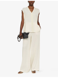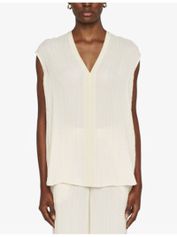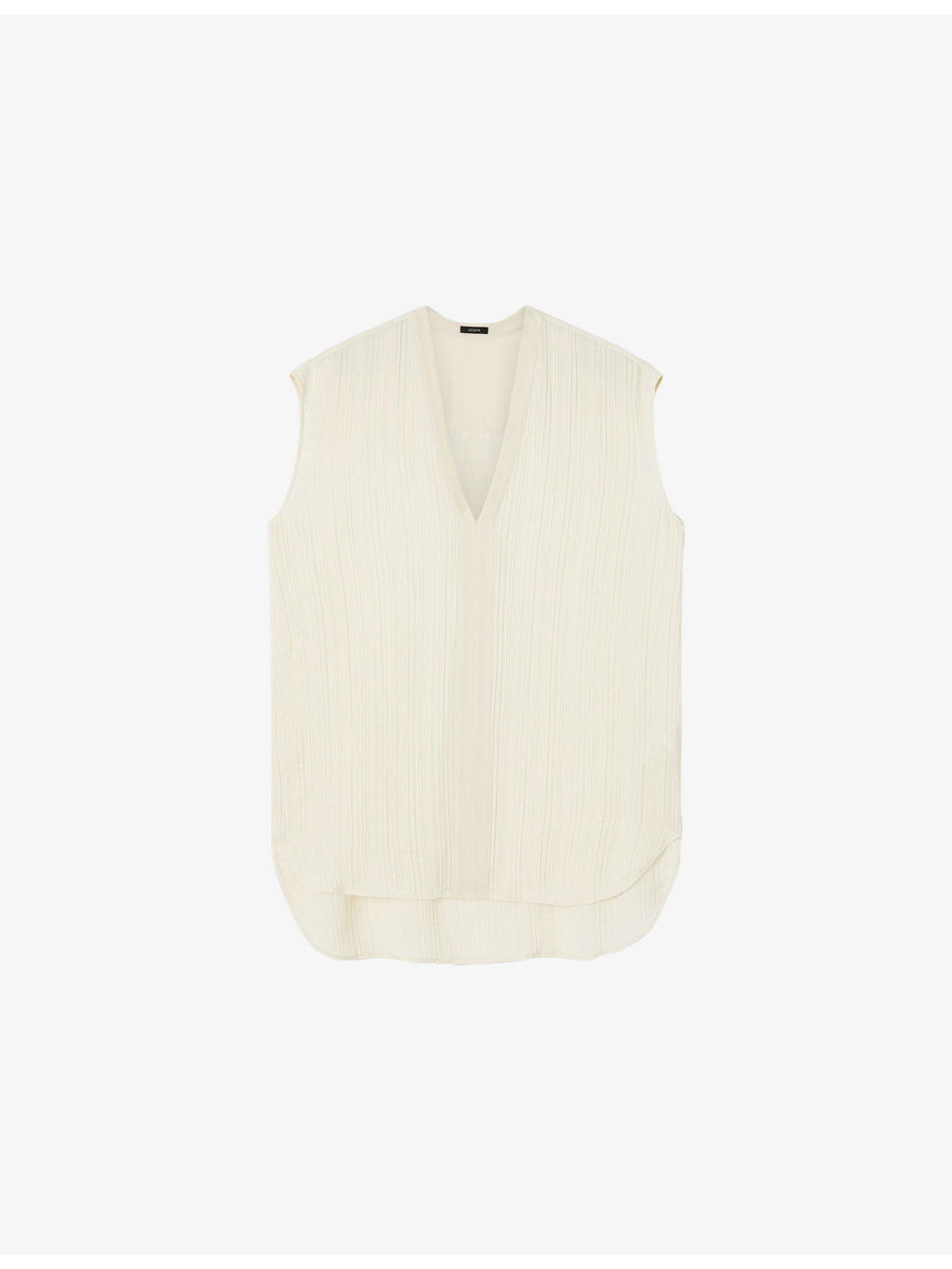 PRODUCT DETAILS - JOSEPH viscose and silk-blend top - 69% viscose, 31% silk - Relaxed fit, V-neck, sleeveless, dropped shoulders, pleated texture, semi-sheer, stepped hem - Dry clean - True to size - Lightweight, non-stretch Ref: R04471523