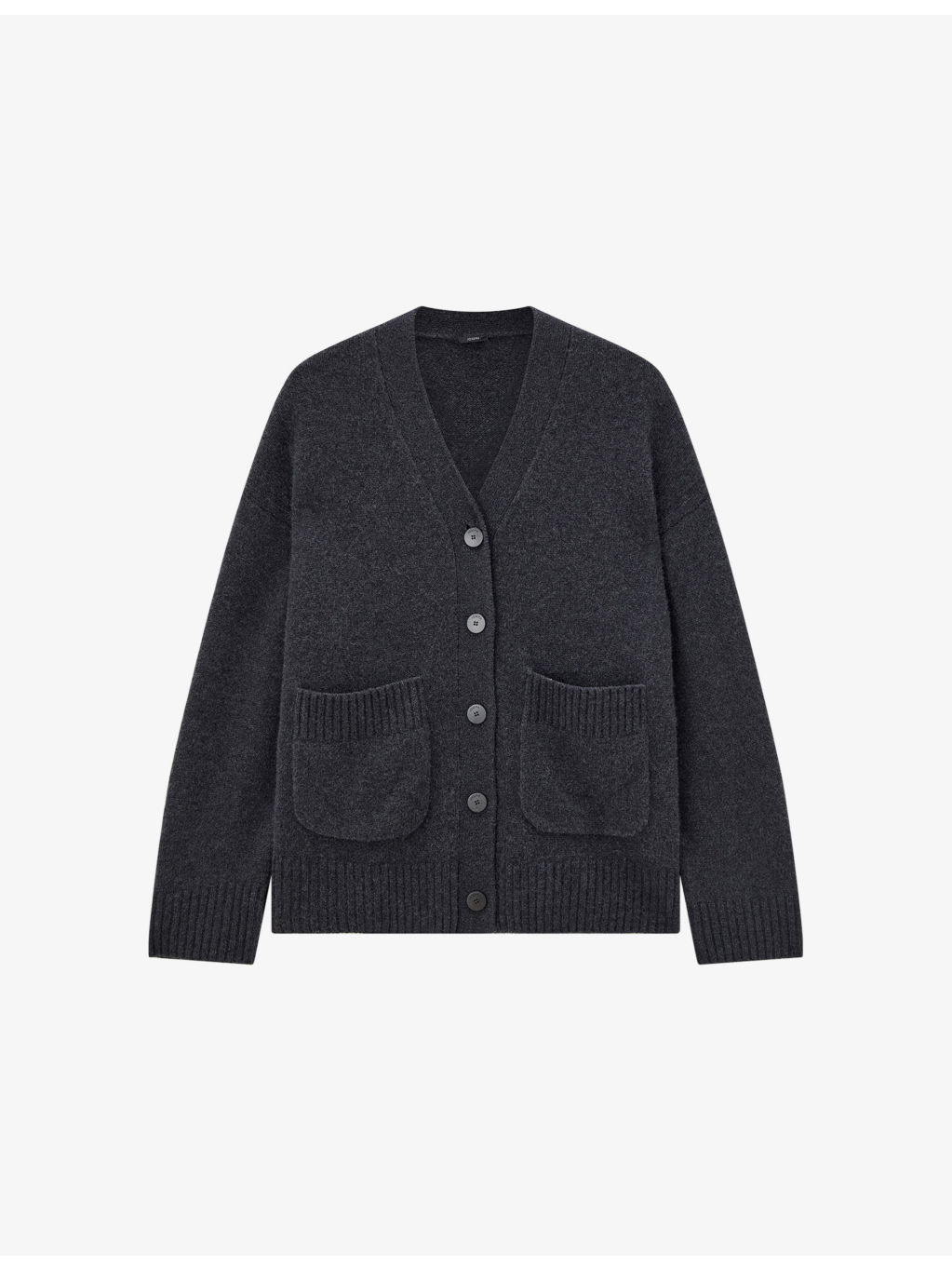 PRODUCT DETAILS - JOSEPH cashmere cardigan - 100% cashmere - Exposed button fastening at front - Relaxed fit, V-neck, long sleeves, dropped shoulders, two patch pockets at front, side slits at hem, ribbed trim to pockets, cuffs and hem - Hand wash - True to size - Midweight, non-stretch Ref: R04534593