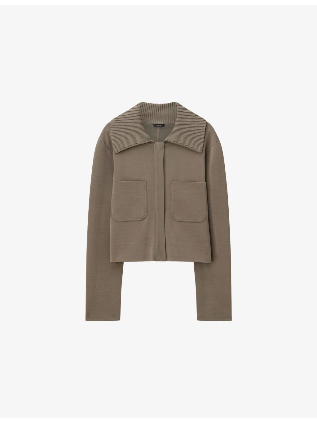 PRODUCT DETAILS - Joseph knitted jacket - 73% viscose, 24% polyamide, 3% elastane - Concealed zip fastening - Regular fit, wide collar, long sleeves, patch pockets at front, short length - Dry clean - True to size - Model is 5ft 10in/1.78m and wears a size small - Midweight, stretchy Ref: R04519324