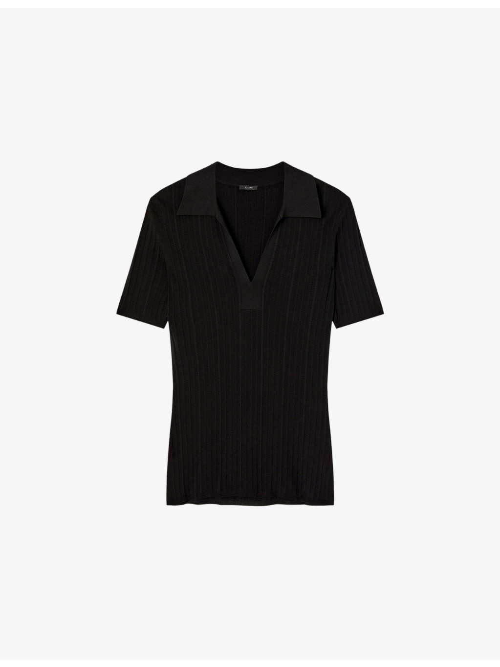 PRODUCT DETAILS - Joseph knitted polo top - 80% viscose, 20% polyamide - Slim fit, collar, V-neck, short sleeves, all-over ribbed texture - Hand wash - True to size - Model is 5ft 10in/1.78m and wears a size small - Lightweight, stretchy Ref: R04471516