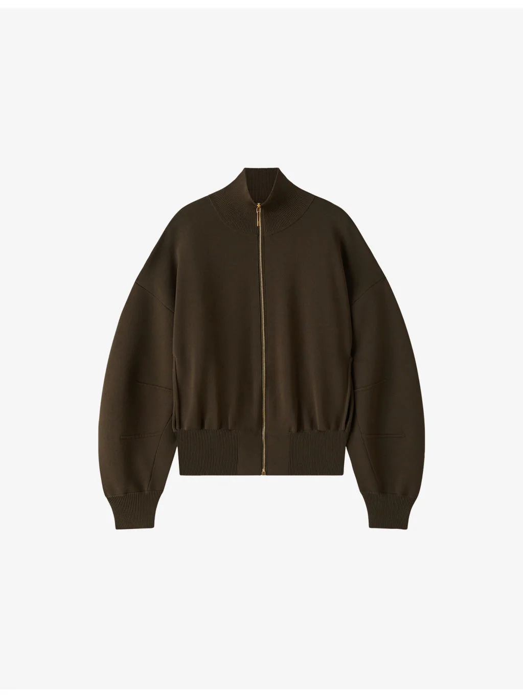 PRODUCT DETAILS - JOSEPH knitted bomber jacket - 60% viscose, 19% polyamide, 18% polyester, 3% elastane - Zip fastening - Relaxed fit, funnel-neck, balloon sleeves, side pockets, ribbed trims - Dry clean - True to size - Midweight, slight stretch Ref: R04577375